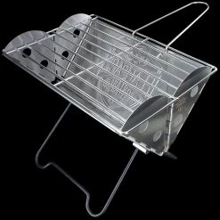 The Uco Mini Flatpack portable grill & firepit serves 2-3 people and packs compact for easy transportation to the beach, campsite or barbeque. It is Stainless steel construction for durability and easy maintenance. It has a quick 30 second set-up and you are ready to go.