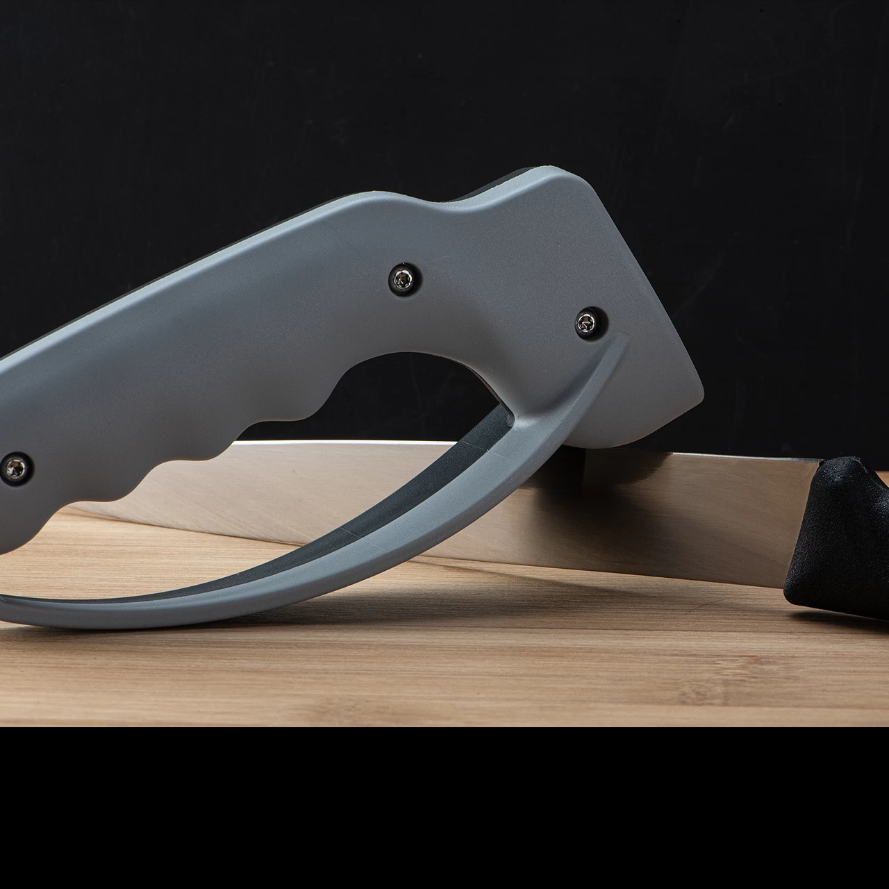 This piece’s sharpening mechanism consists of small V-shaped plates formed of carbide metal, which have been placed at an optimal angle inside the design’s outer structure.